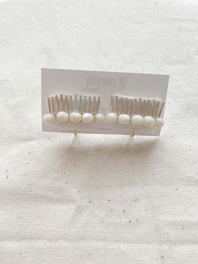 霜柱をイメージした、ビーズ刺繍の美しいイヤリングです。