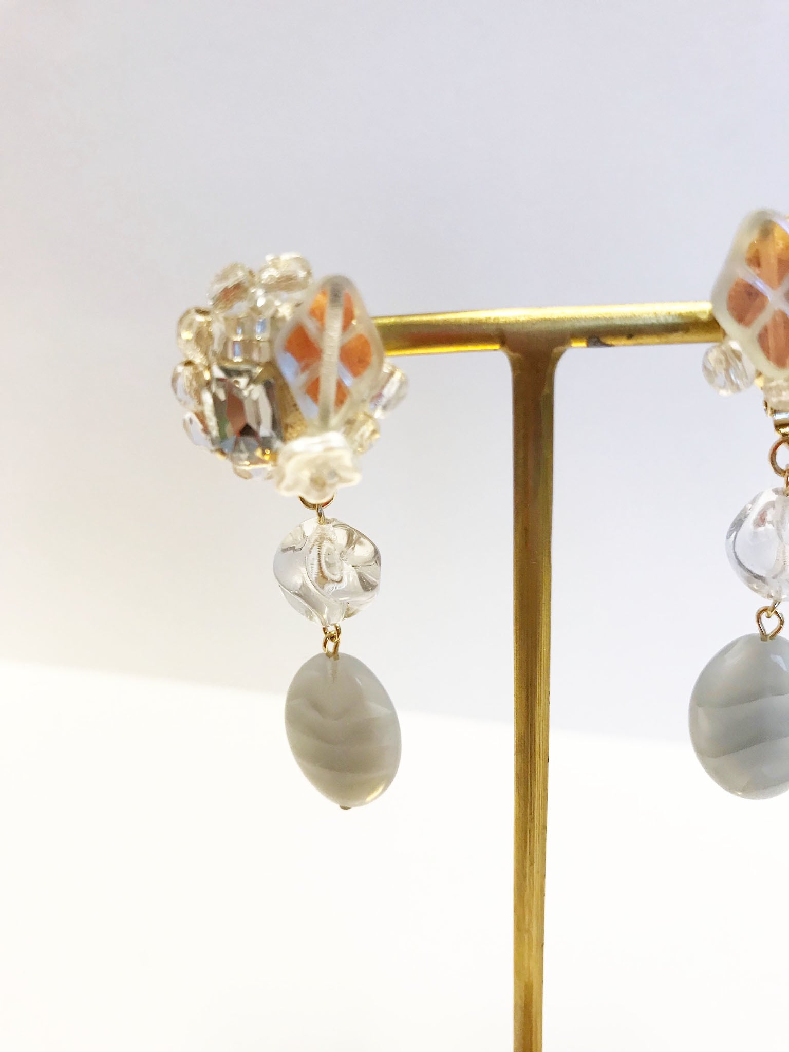 白や透明感のあるチェコビーズを合わせてイヤリングに仕立てました。