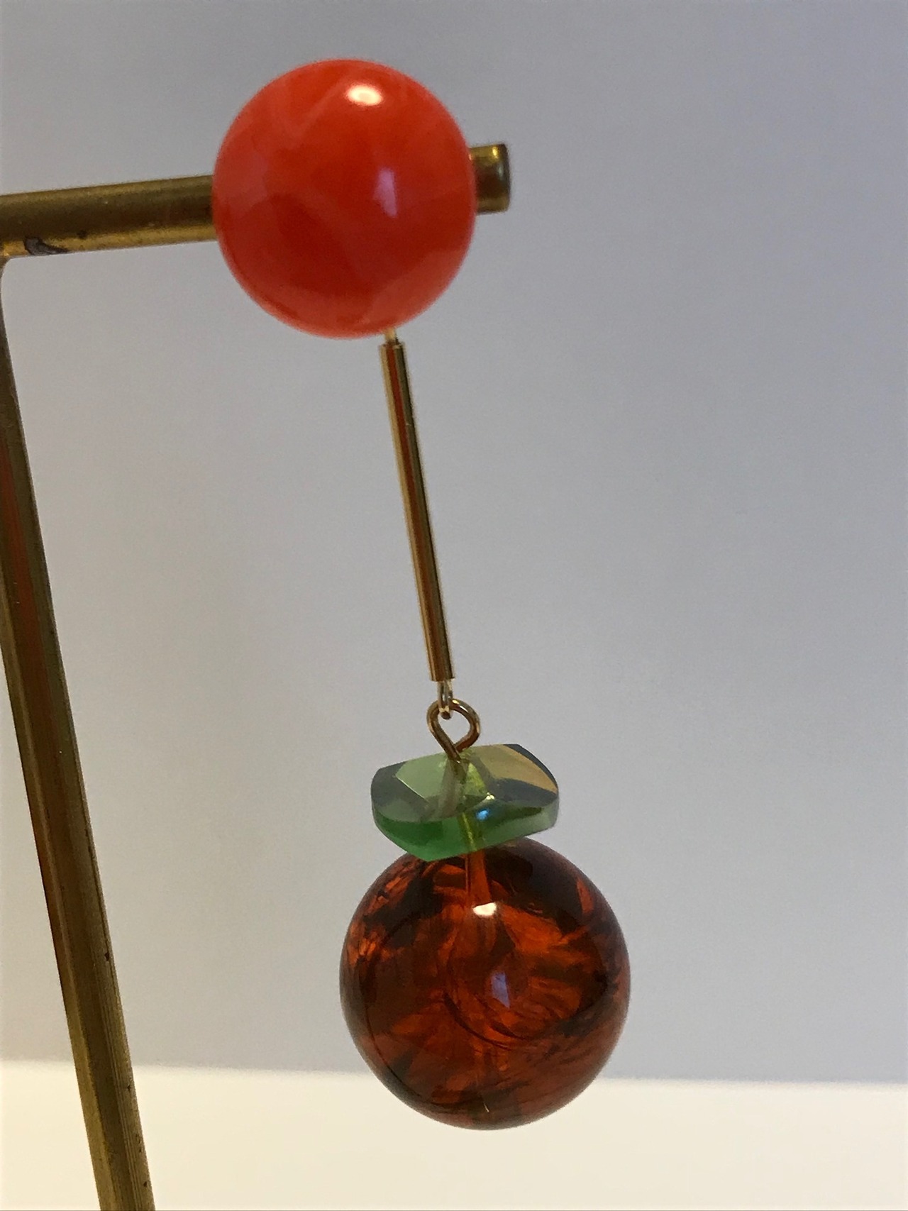 大粒の琥珀のようなアクリルビーズが印象的なピアスです。
