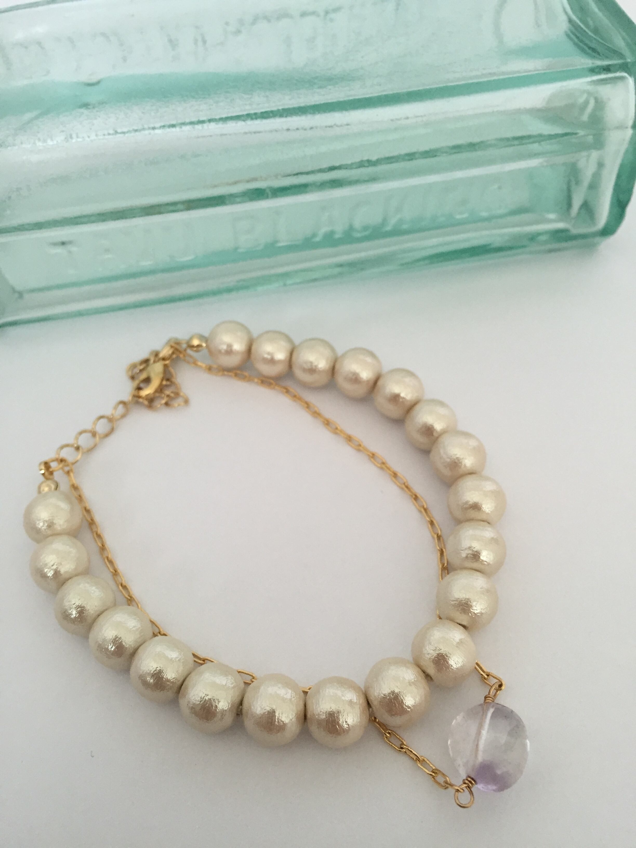 コットンパールとアメジストを一粒をシンプルに繋いだブレスレットです。