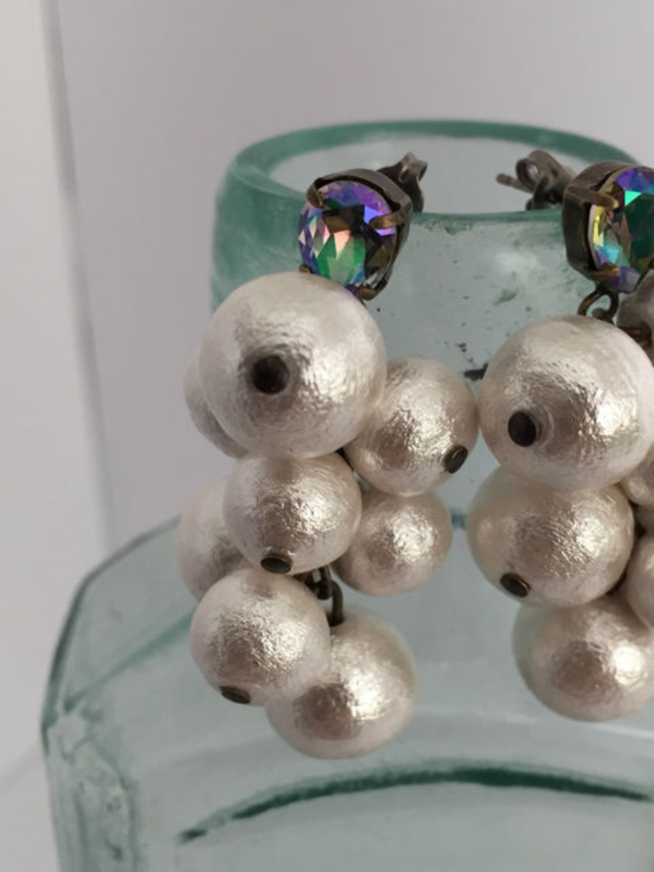大小色々な大きさのコットンパールをバランスよく組み合わせた、ボリュームはあるけれどふんわりと軽いピアスが出来上がりました。