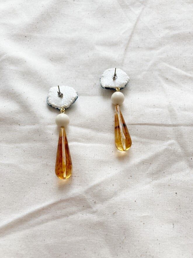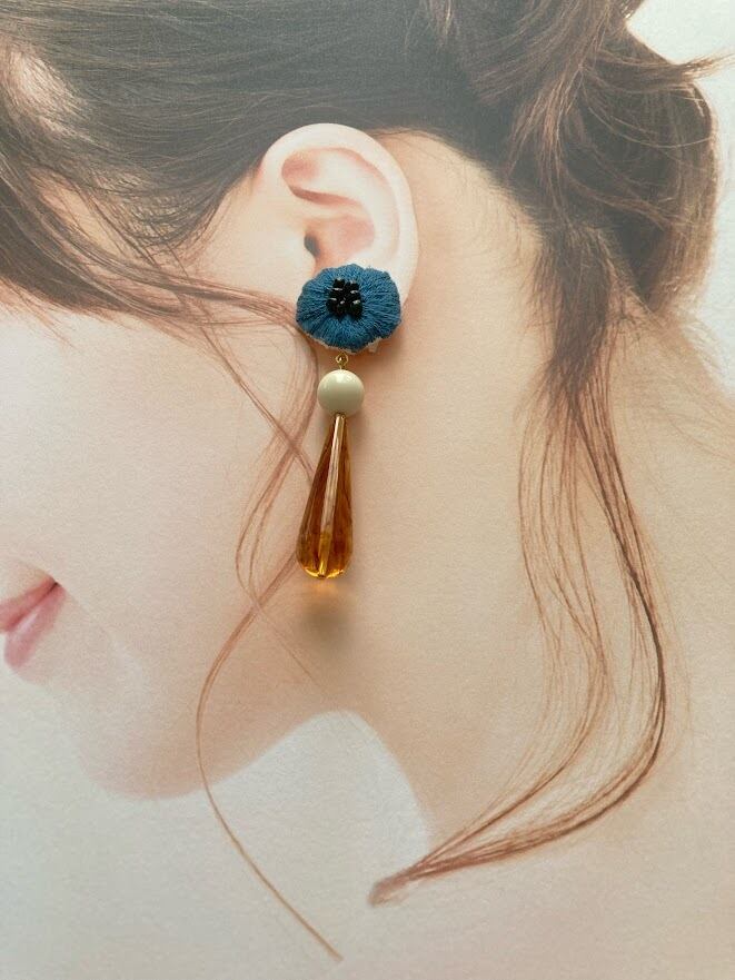 フリーハンドで描いた花を刺繍で仕立てたピアスです。