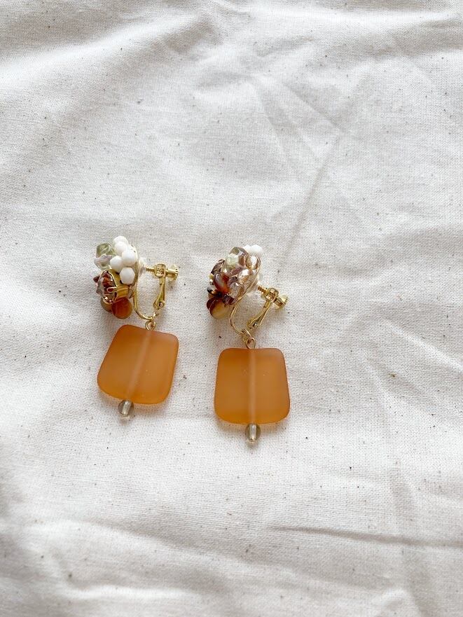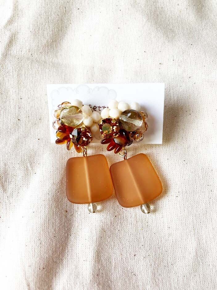 紅茶とミルクが混ざり合うような、透明感と優しさが混ざったイヤリングです。