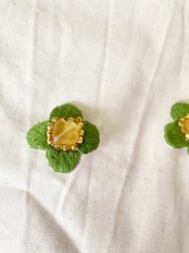 緑の花びらと、はちみつ色のチェコビーズが印象的なイヤリングができました。