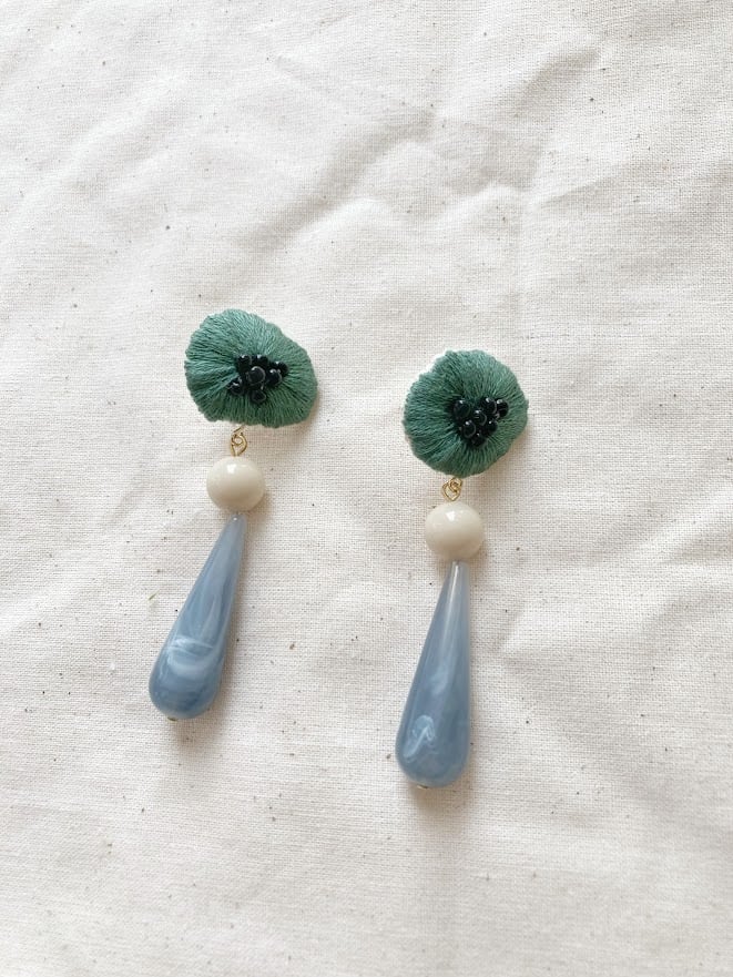 フリーハンドで描いた花を刺繍で仕立てたイヤリングです。